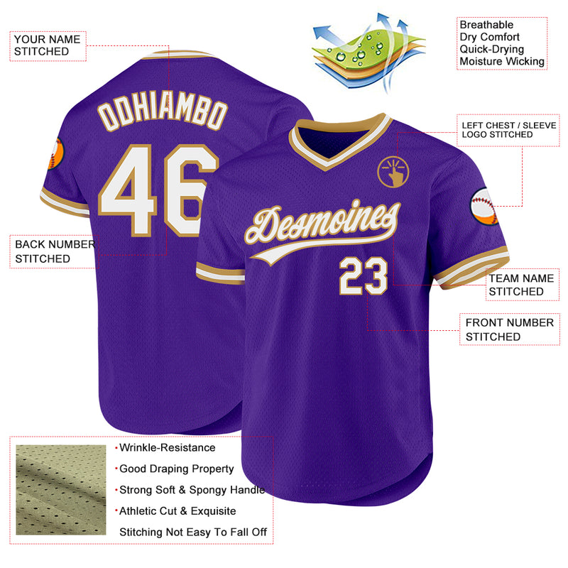 Custom Purple White-Old Gold Authentic Throwback Baseball Jersey