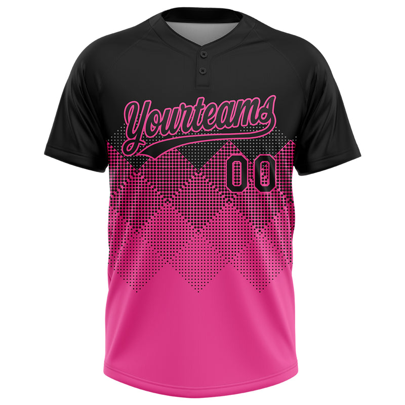 Custom Black Pink 3D Pattern Gradient Square Shapes Two-Button Unisex Softball Jersey