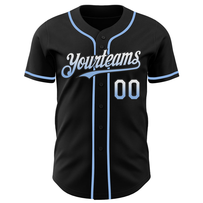 Custom Black White-Light Blue Authentic Fade Fashion Baseball Jersey