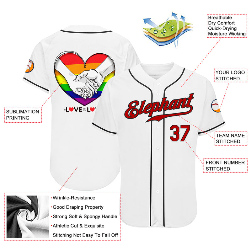 Custom White Red-Black Rainbow Colored Heart For Pride Month Love Is Love LGBT Authentic Baseball Jersey