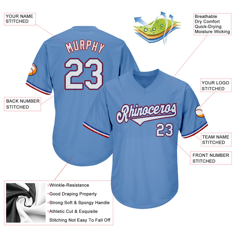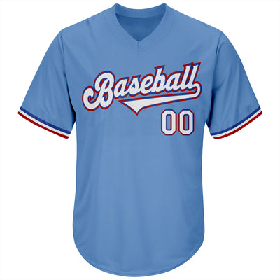 Custom Light Blue White-Red Authentic Throwback Rib-Knit Baseball Jersey Shirt
