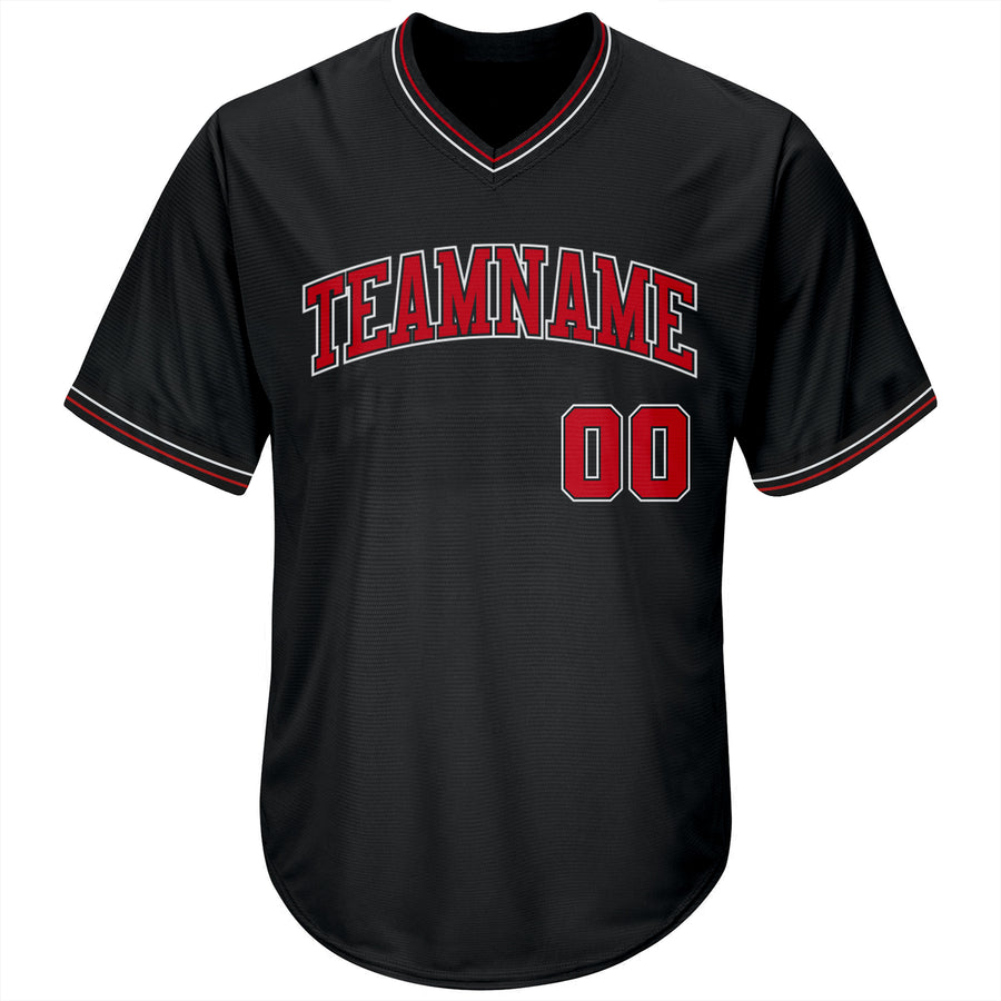 Custom Black Red-White Bomber Full-Snap Varsity Letterman Two Tone Jacket