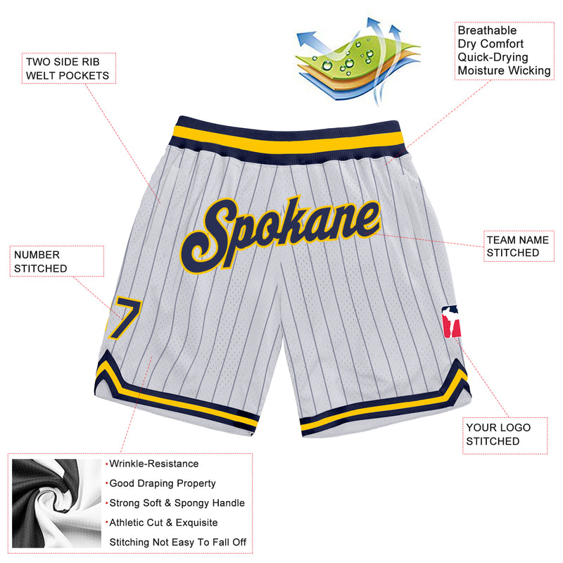 Custom White Navy Pinstripe Navy-Gold Authentic Basketball Shorts