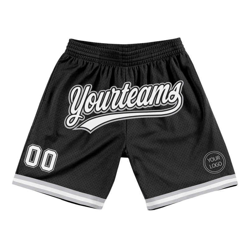 Custom Black White-Gray Authentic Throwback Basketball Shorts