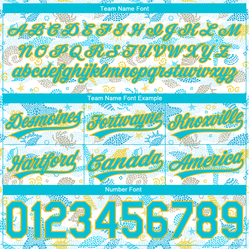 Custom White Lakes Blue-Gold 3D Pattern Starfishs And Shells Authentic Basketball Shorts