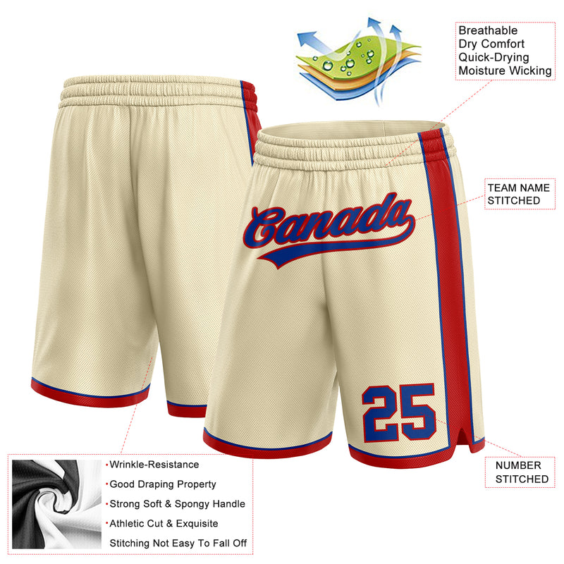 Custom Cream Royal-Red Authentic Basketball Shorts