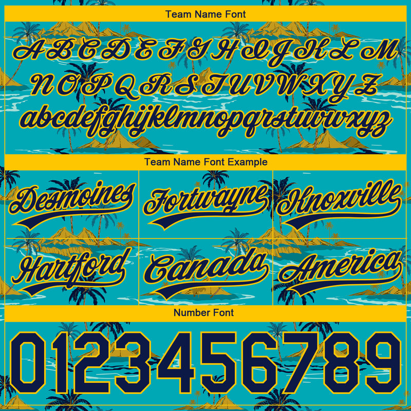 Custom Teal Navy-Yellow 3D Pattern Hawaii Palm Trees And Island Authentic Basketball Shorts