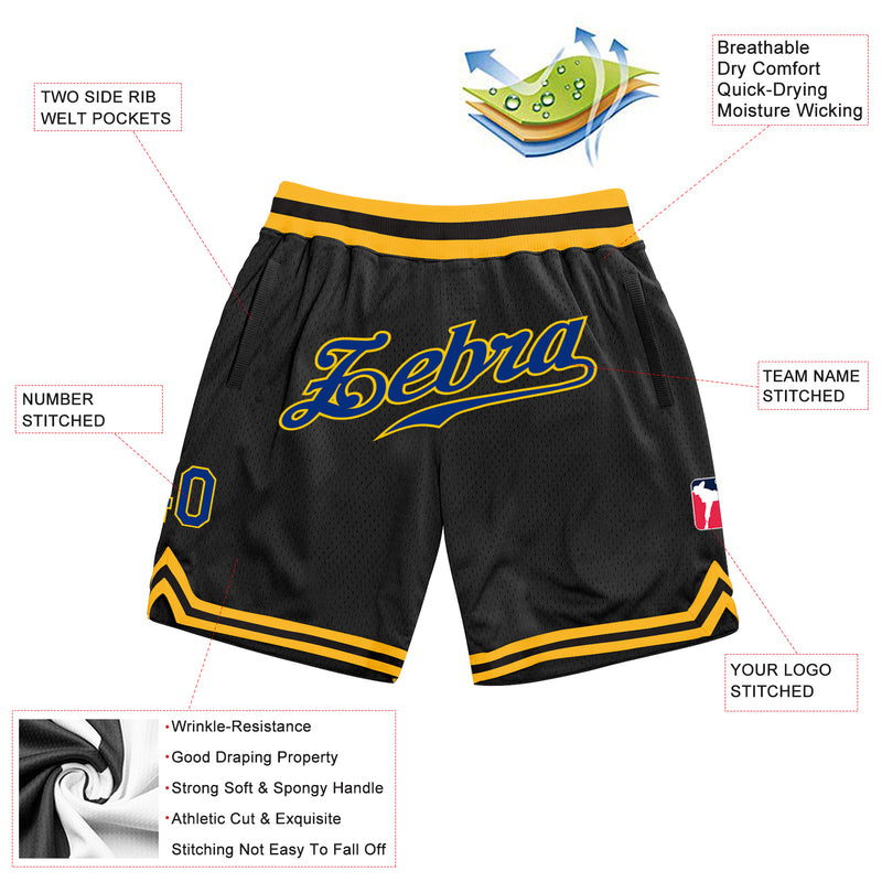 Custom Black Royal-Gold Authentic Throwback Basketball Shorts