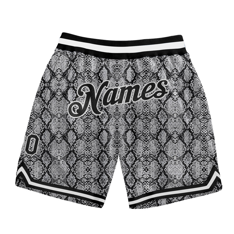 Custom Black Black-White 3D Pattern Design Snakeskin Authentic Basketball Shorts