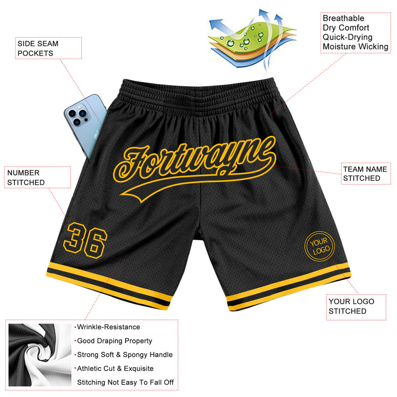Custom Black Gold Authentic Throwback Basketball Shorts