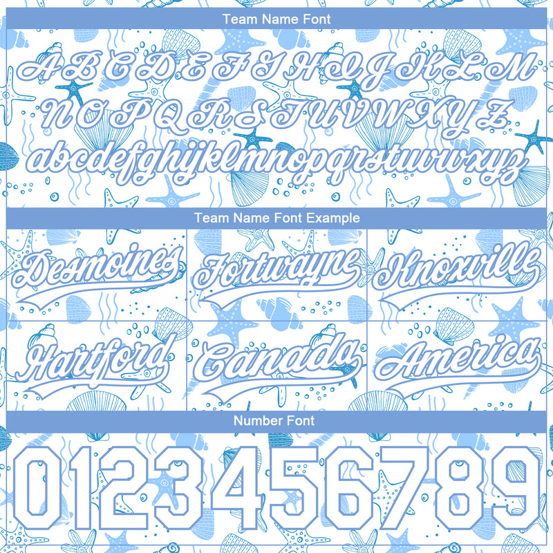 Custom White Light Blue 3D Pattern Starfishs And Shells Authentic Basketball Shorts