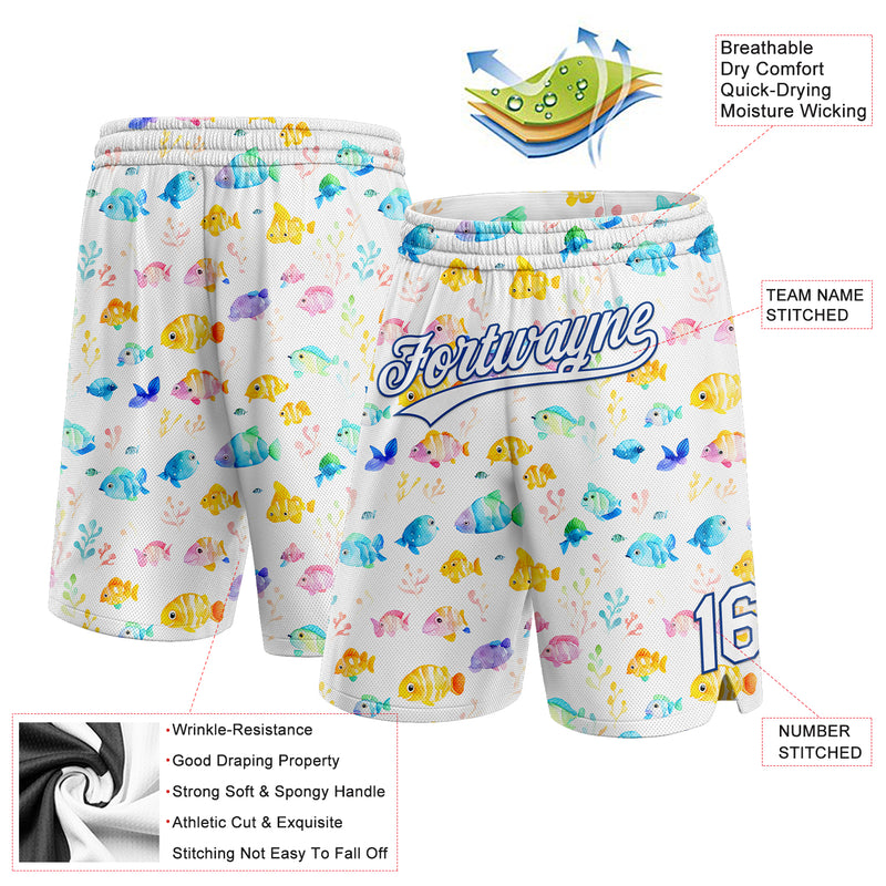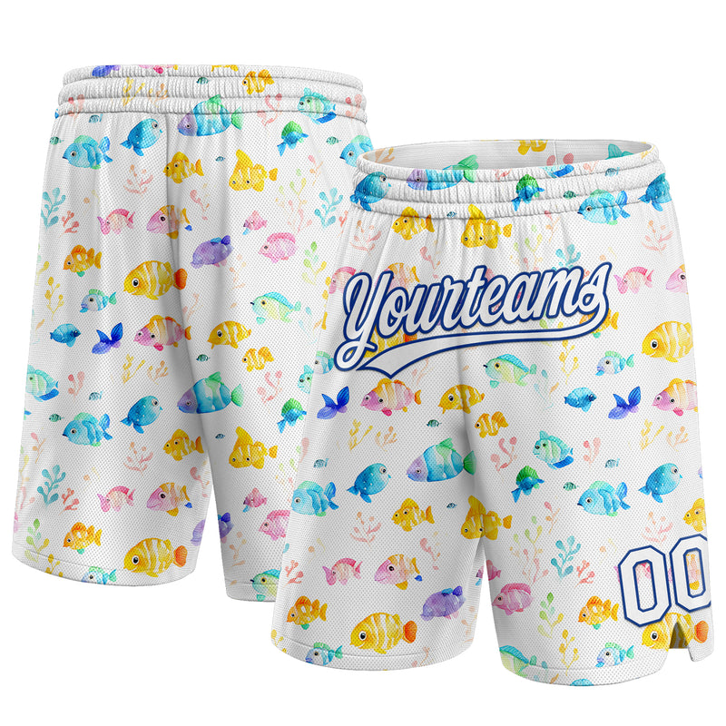 Custom White Royal 3D Pattern Fish Authentic Basketball Shorts