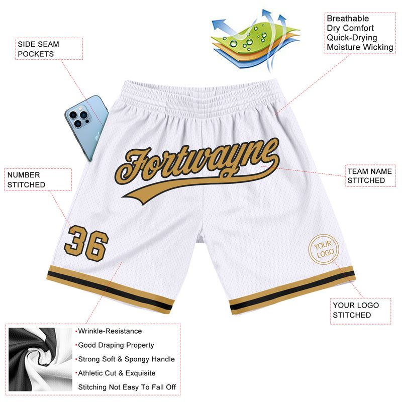 Custom White Old Gold-Black Authentic Throwback Basketball Shorts