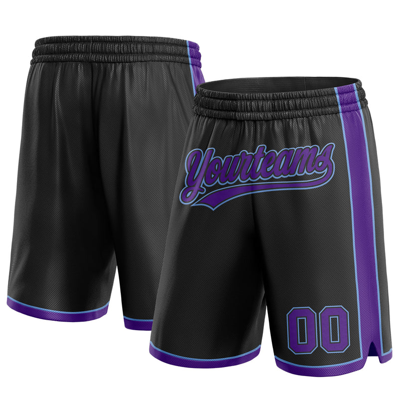 Custom Black Purple-Light Blue Authentic Basketball Shorts