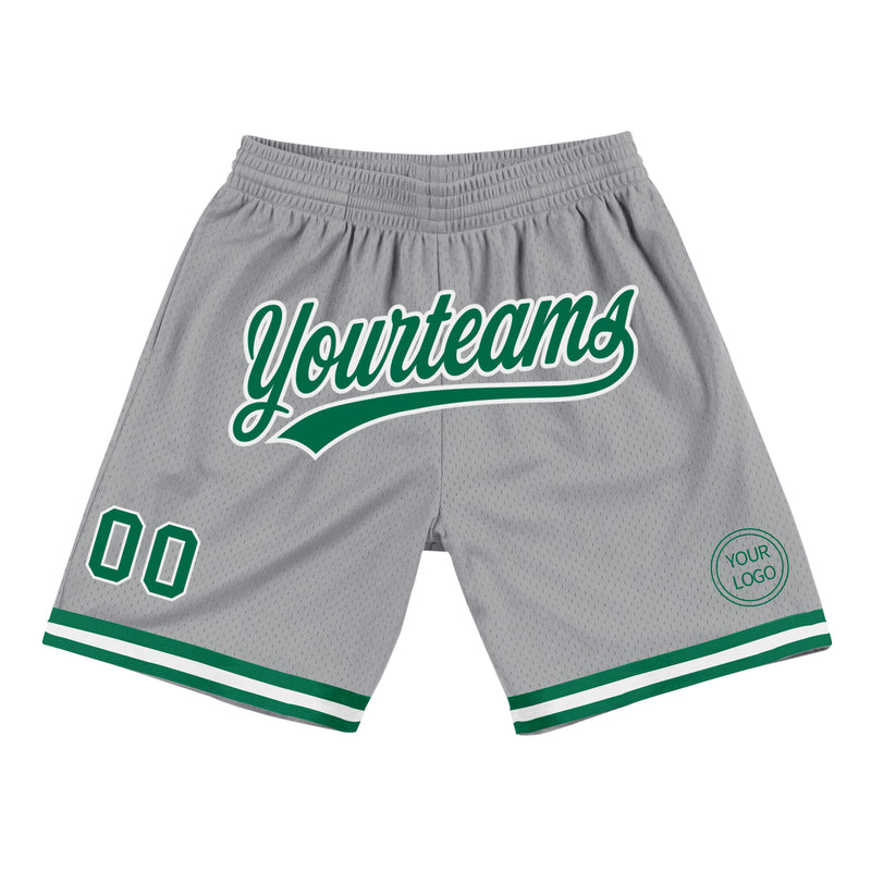 Custom Gray Kelly Green-White Authentic Throwback Basketball Shorts