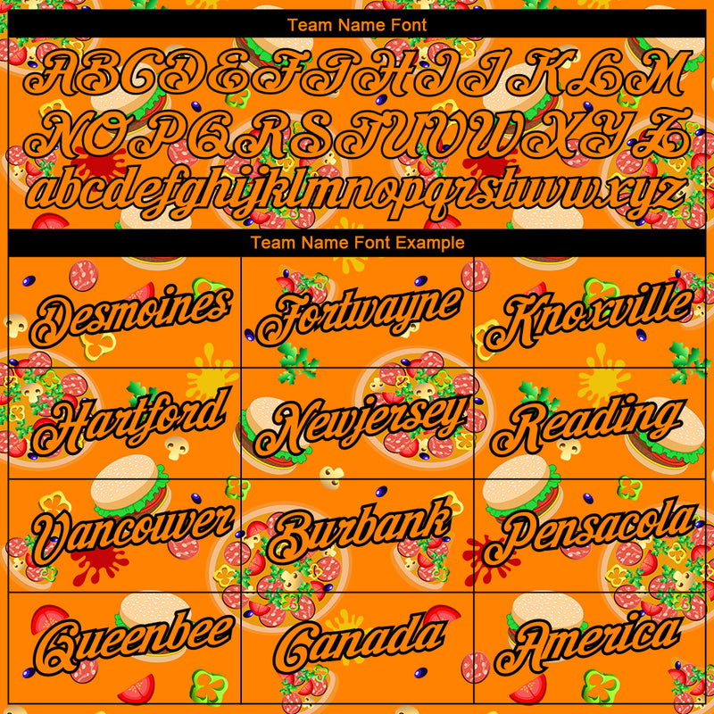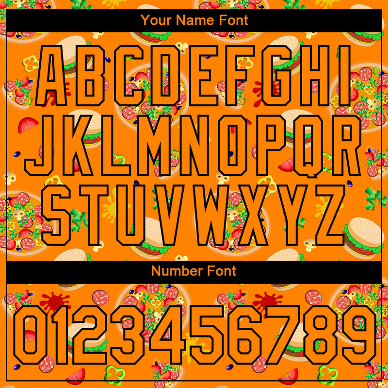 Custom Bay Orange Black 3D Pattern Design Food Pizza And Burger Performance T-Shirt