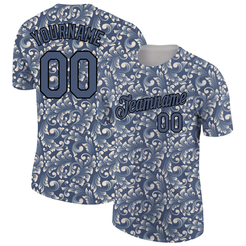 Custom Blue Black 3D Pattern Floral Design Performance T-Shirt