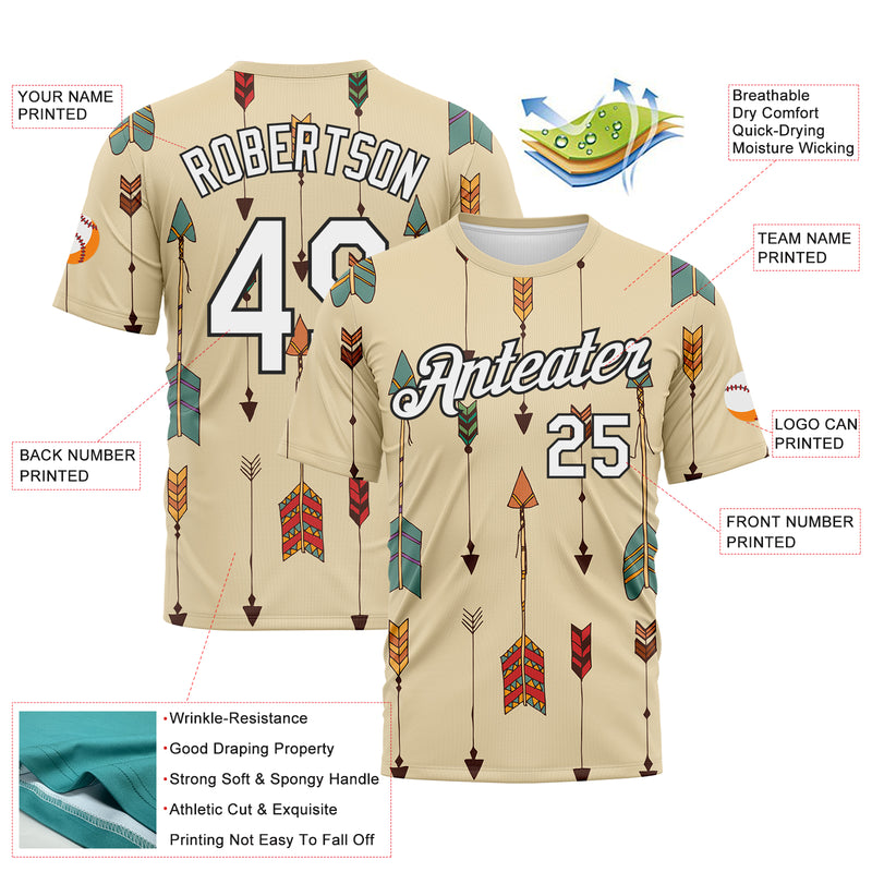Custom Cream White-Black 3D Pattern Design Arrow Archery Bow Target Performance T-Shirt