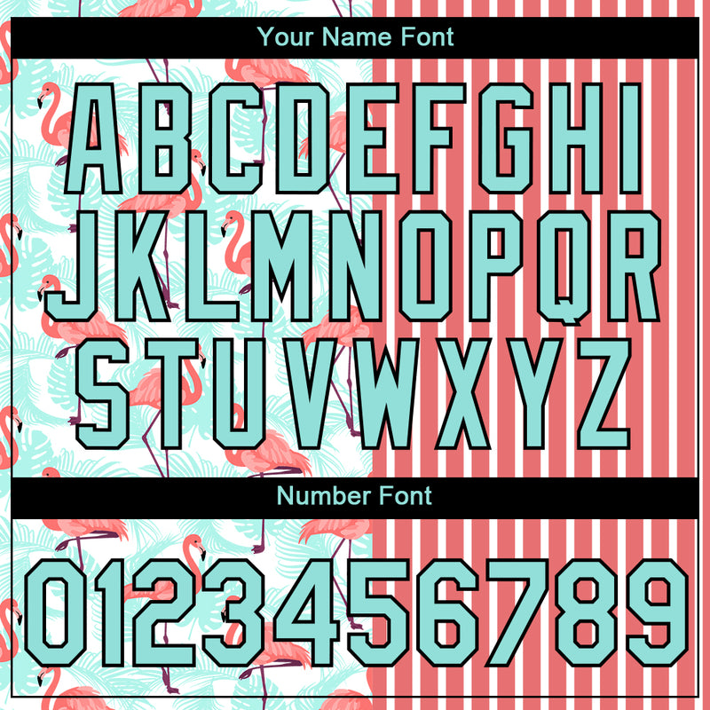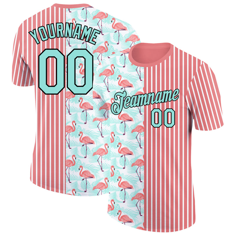 Custom Medium Pink Ice Blue-Black 3D Tropical Hawaii Palm Leaves And Animal Flamingo Performance T-Shirt