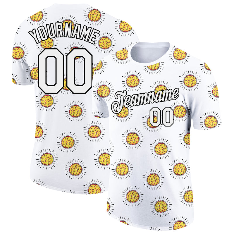 Custom White Black 3D Pattern Design Food Pizza Performance T-Shirt