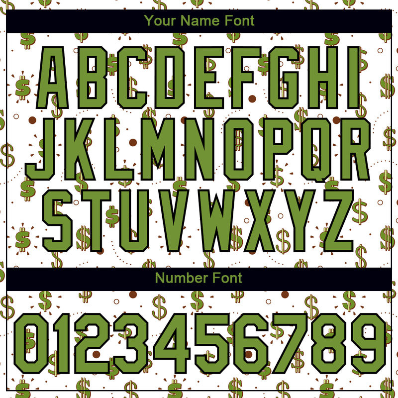 Custom White Neon Green-Black 3D Pattern Design Dollar Sign Money Theme Performance T-Shirt