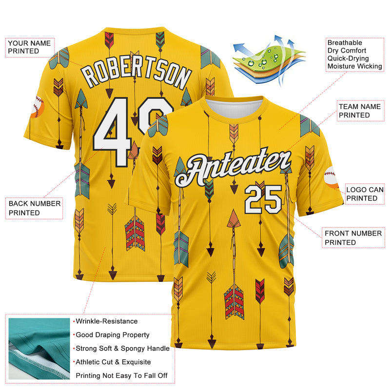 Custom Yellow White-Black 3D Pattern Design Arrow Archery Bow Target Performance T-Shirt