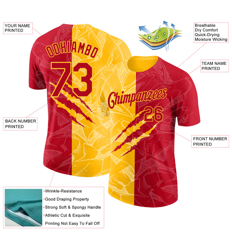 Custom Graffiti Pattern Red-Gold Scratch 3D Performance T-Shirt