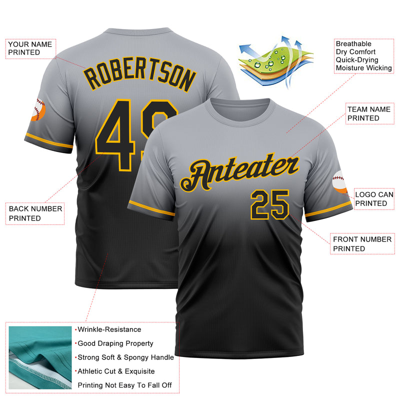 Custom Gray Black-Gold Fade Fashion Performance T-Shirt