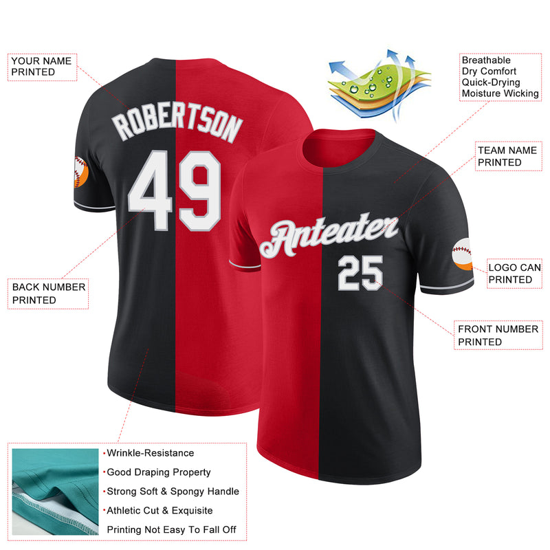 Custom Black Red-Gray Split Fashion Performance T-Shirt