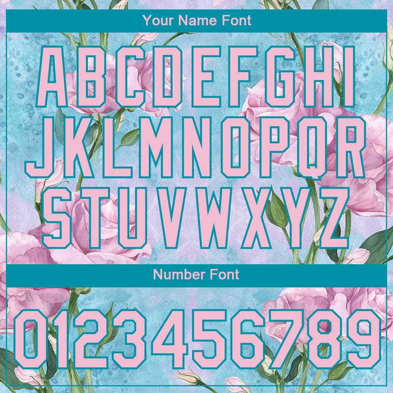 Custom Teal Light Pink 3D Pattern Design Flowers Performance T-Shirt