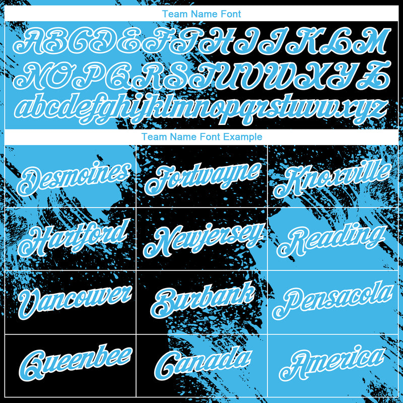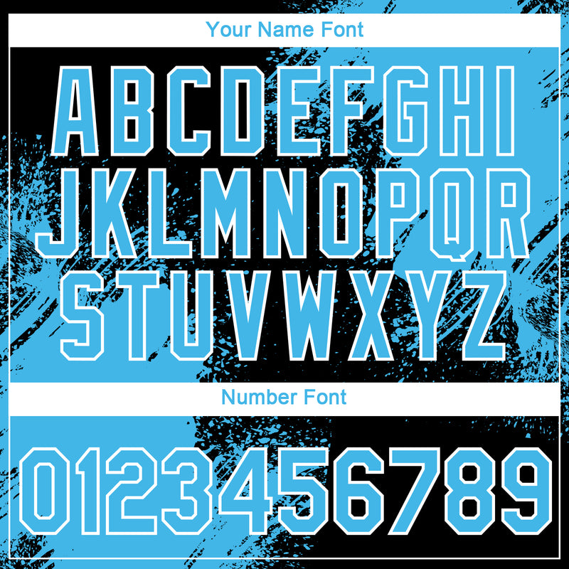 Custom Black Sky Blue-White 3D Pattern Design Abstract Brush Stroke Performance T-Shirt