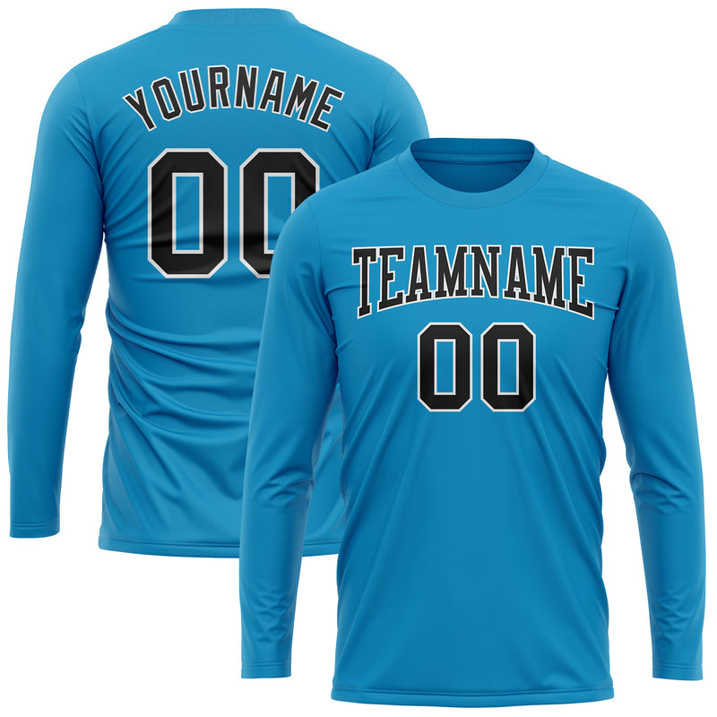 Custom Panther Blue Black-White Long Sleeve Performance T-Shirt