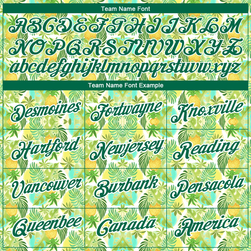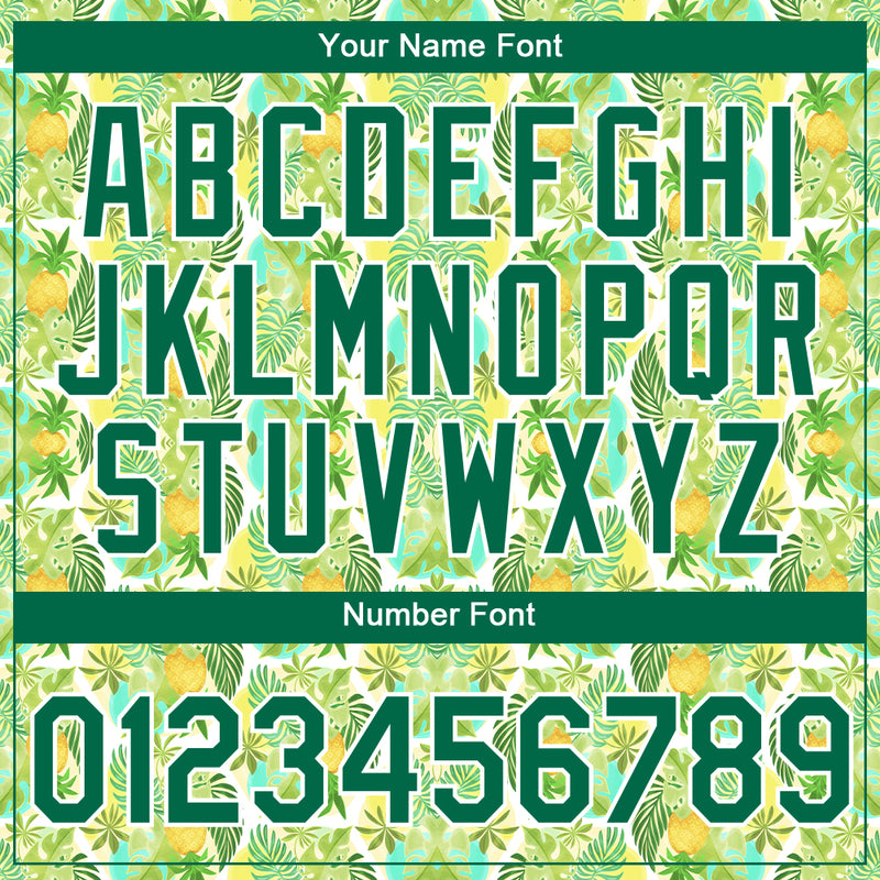 Custom White Kelly Green 3D Pattern Design Hawaii Tropical Palm Leaves And Pineapple Performance T-Shirt