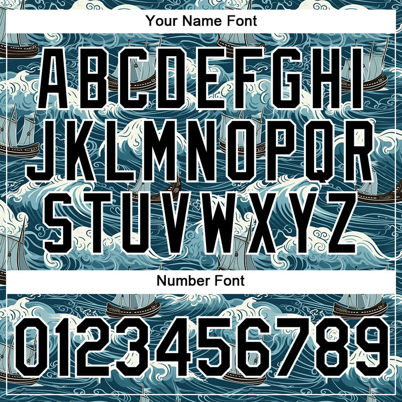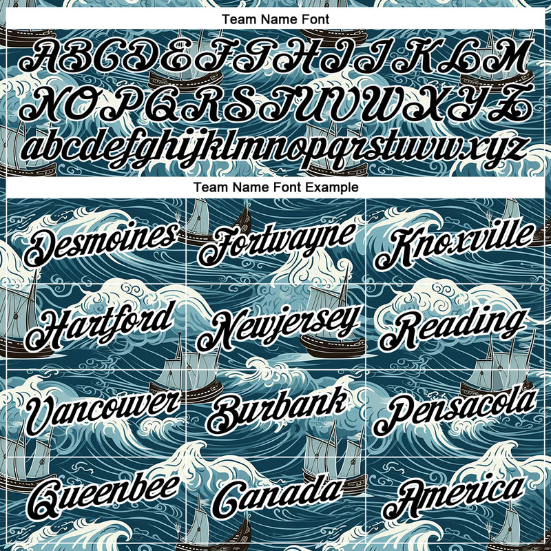 Custom Teal Black-White 3D Pattern Design Sailing Ship Columbus Day Performance T-Shirt