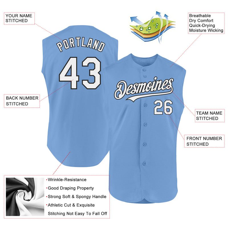 Custom Light Blue White-Black Authentic Sleeveless Baseball Jersey