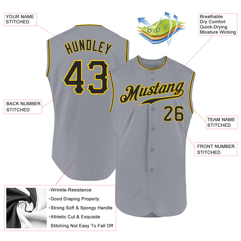 Custom Gray Black-Gold Authentic Sleeveless Baseball Jersey