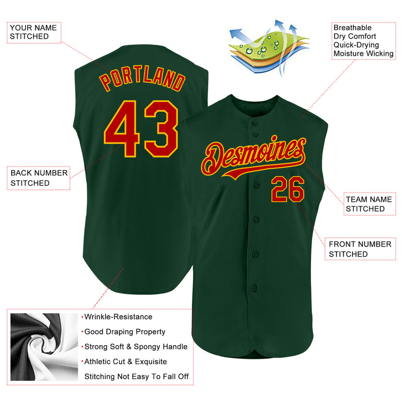 Custom Green Red-Gold Authentic Sleeveless Baseball Jersey
