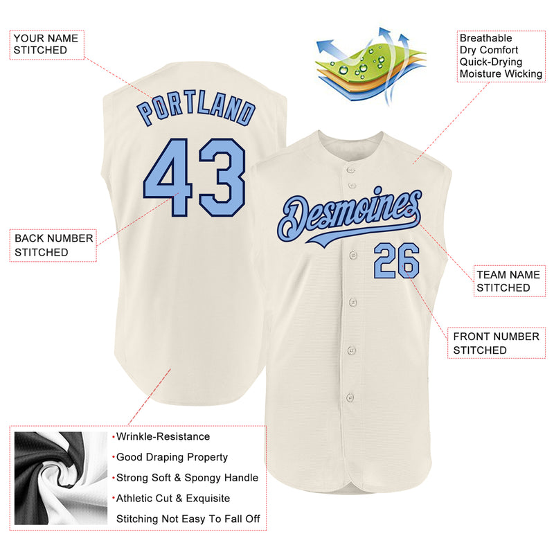 Custom Cream Light Blue-Navy Authentic Sleeveless Baseball Jersey