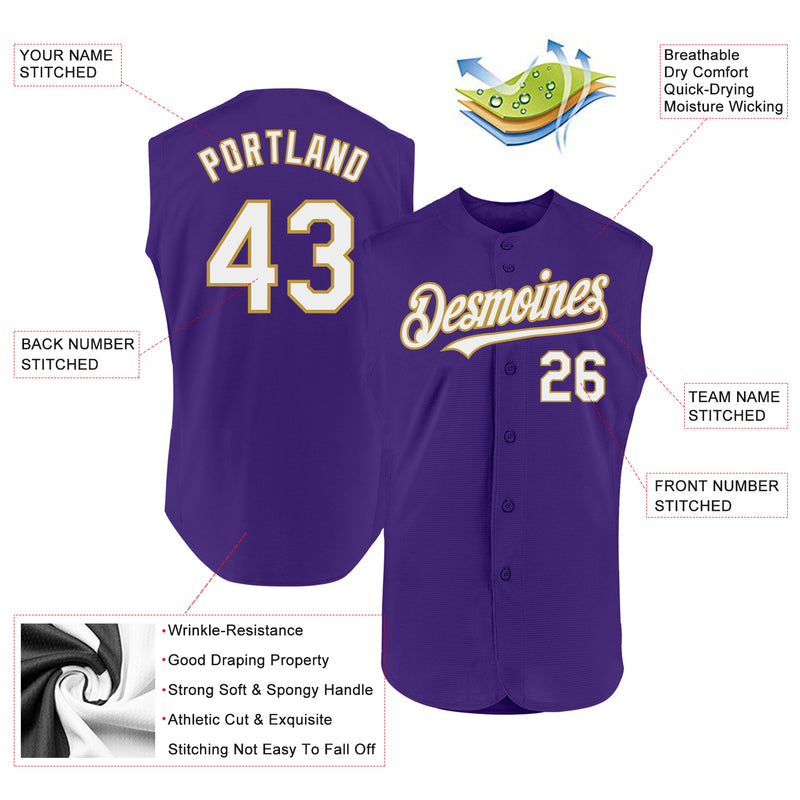 Custom Purple White-Old Gold Authentic Sleeveless Baseball Jersey