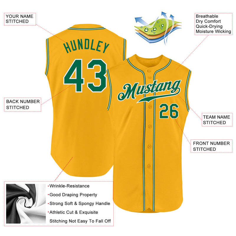 Custom Gold Kelly Green-White Authentic Sleeveless Baseball Jersey
