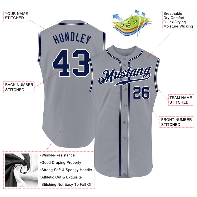 Custom Gray Navy-White Authentic Sleeveless Baseball Jersey