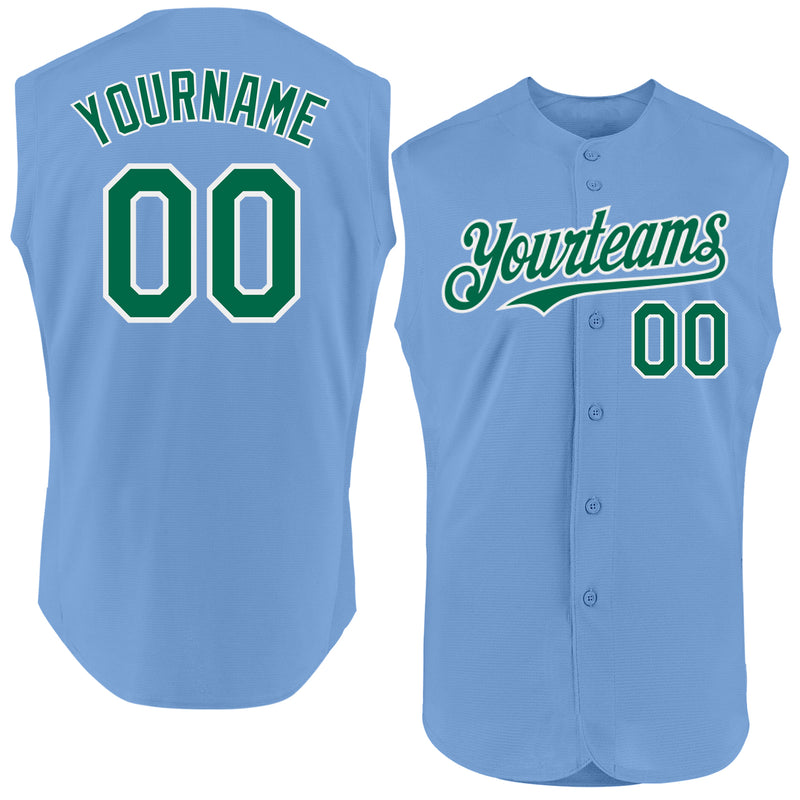 Custom Light Blue Kelly Green-White Authentic Sleeveless Baseball Jersey