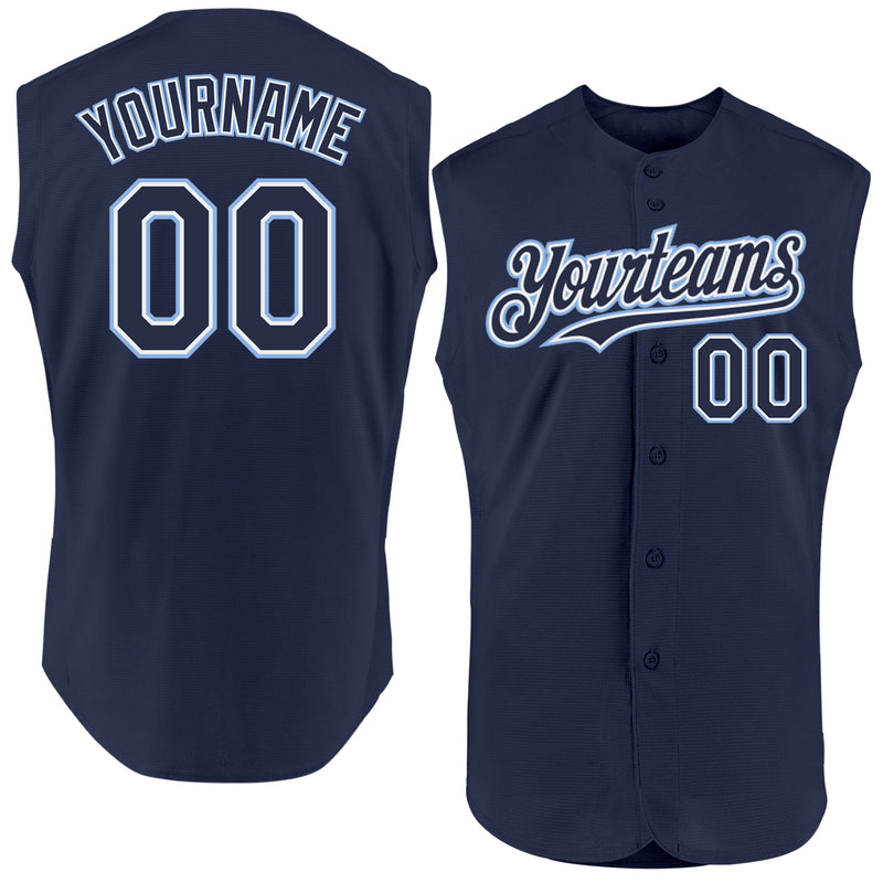 Custom Navy White-Light Blue Authentic Sleeveless Baseball Jersey