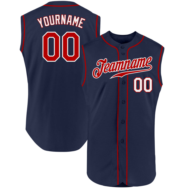 Custom Navy Red-White Authentic Sleeveless Baseball Jersey