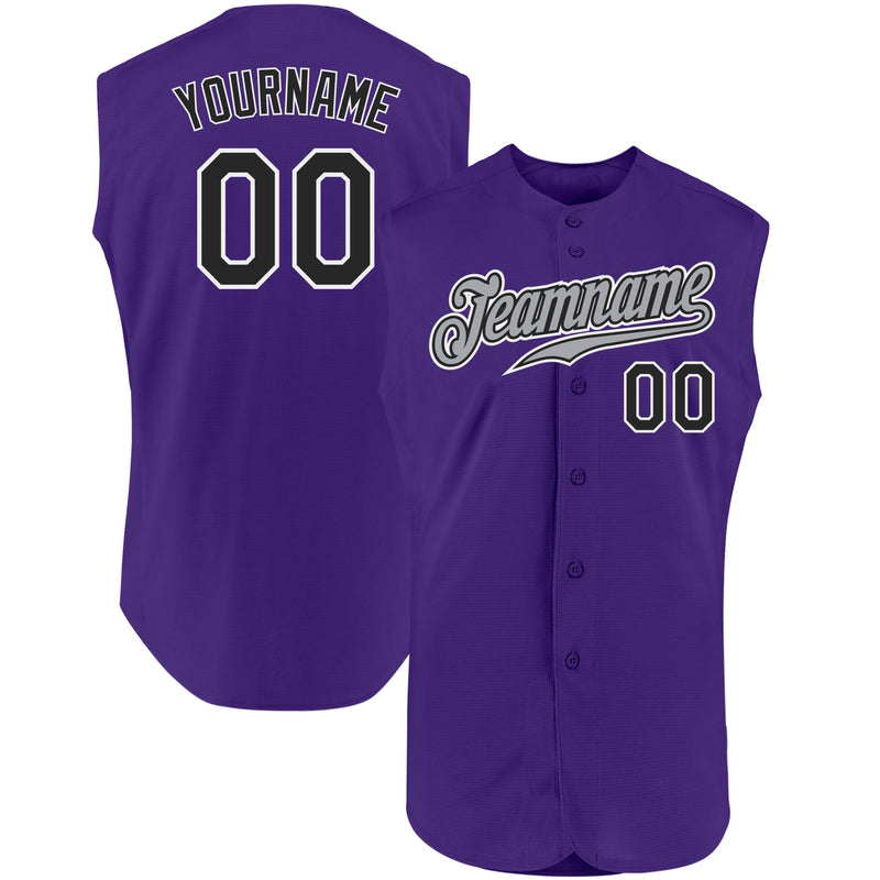 Custom Purple Black-White Authentic Sleeveless Baseball Jersey