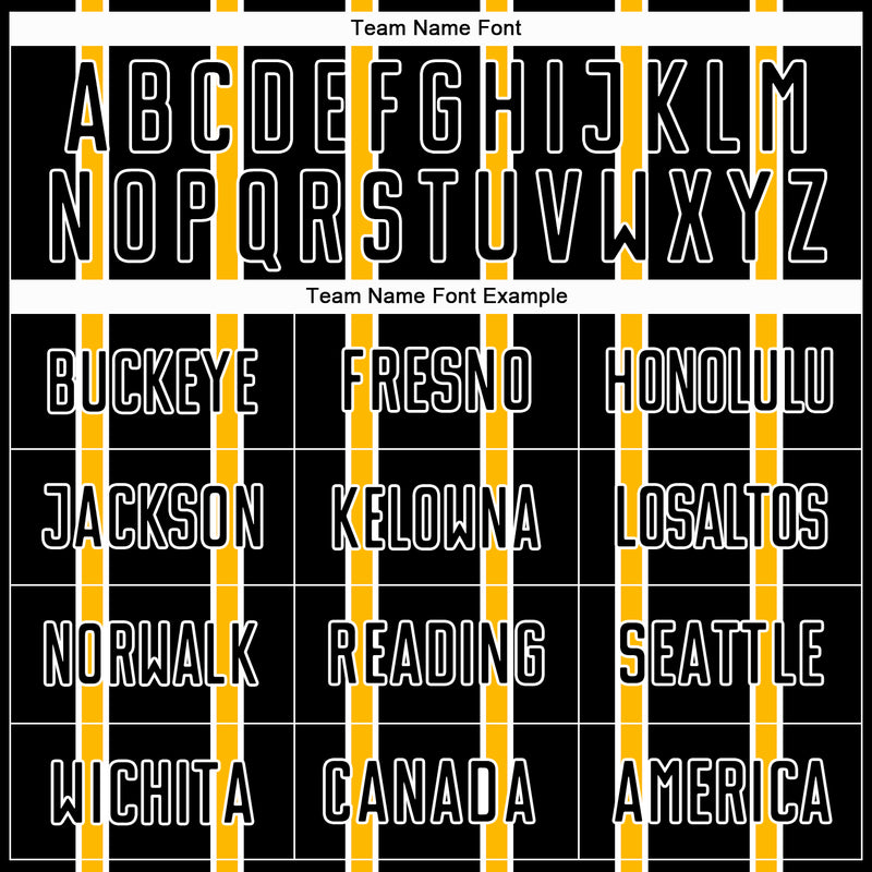 Custom Black Gold-White Stripe Line Sublimation Soccer Uniform Jersey