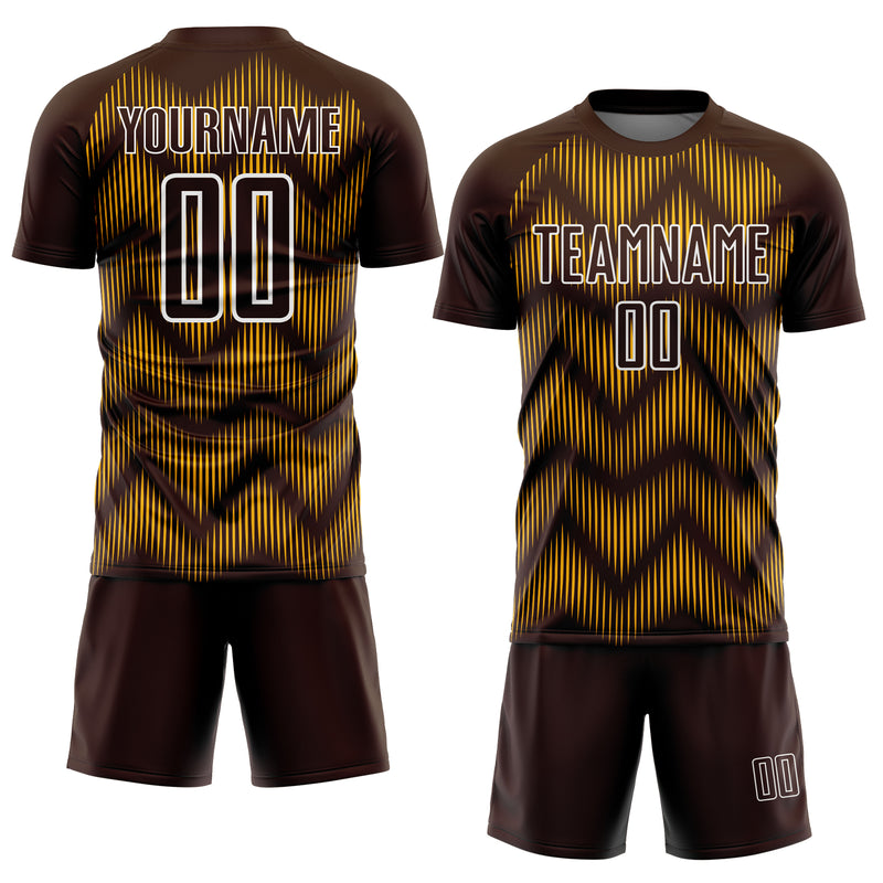 Custom Brown Gold-White Line Sublimation Soccer Uniform Jersey