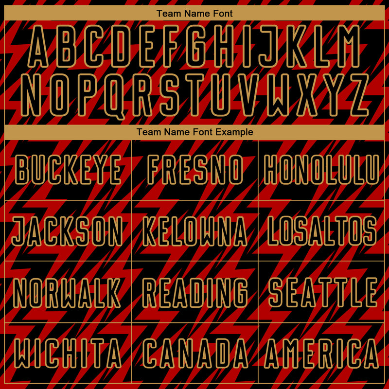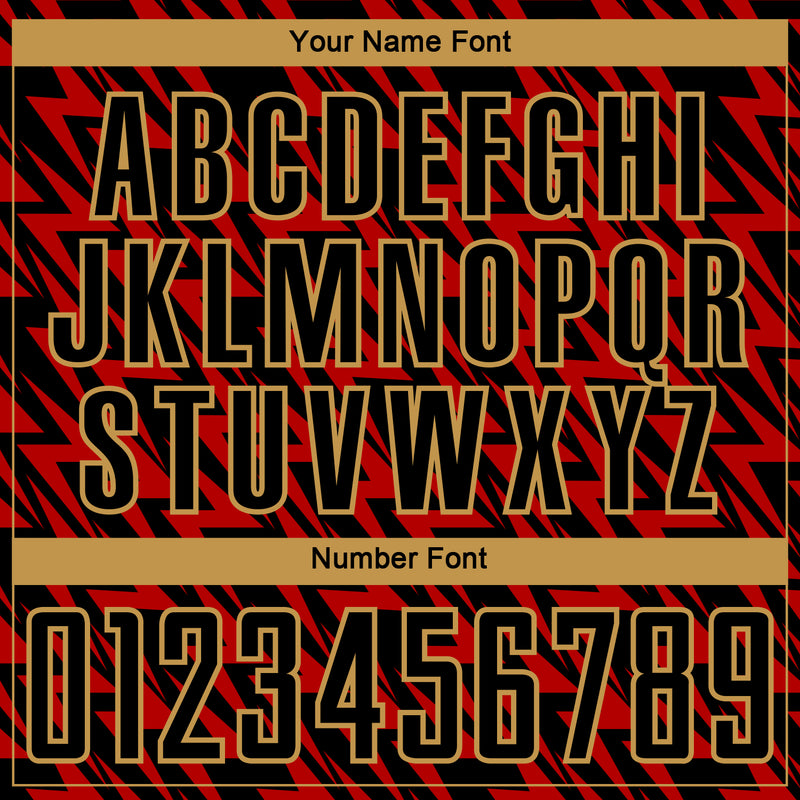 Custom Black Red-Old Gold Lightning Sublimation Soccer Uniform Jersey