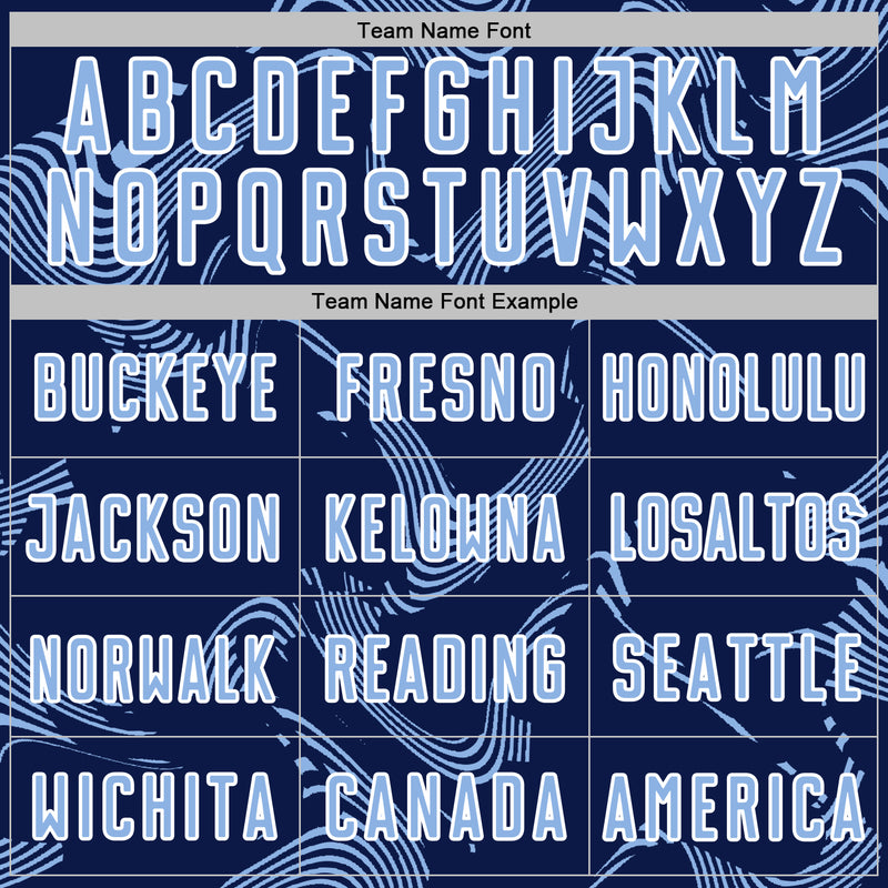 Custom Navy Light Blue-White Curve Lines Sports Sublimation Soccer Uniform Jersey