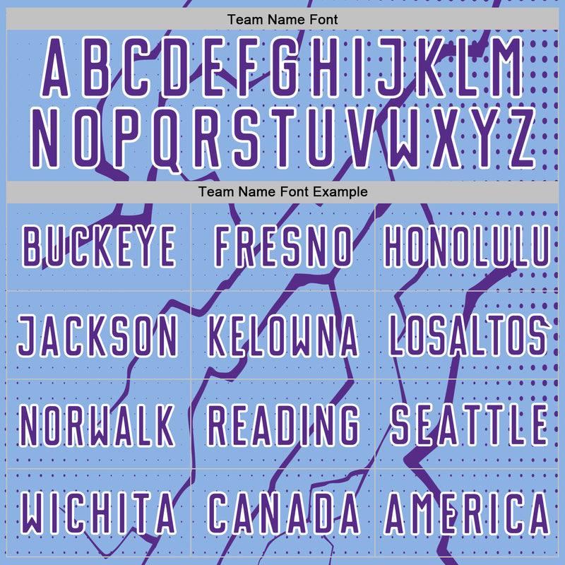 Custom Light Blue Purple-White Lightning Sports Sublimation Soccer Uniform Jersey